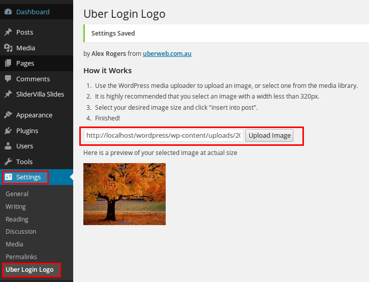 - Dashboard >> Settings >> Uber Login Logo তে গেলে নিচের মত ছবি দেখতে পাবেন। আপলোড ইমেইজ বাটনে ক্লিক করুন এবং ব্যাস কাজ শেষ।