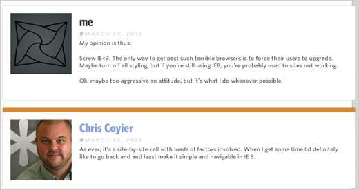 ডিফল্ট WordPress এ অনেক গুলো রেডি করা CSS থাকে যা ডিজাইনার দের স্টাইল পরিবর্তন সহজ করে দিয়েছে। অনেকগুলো CSS স্টাইল ফাইলের মধ্যে কিছু রয়েছে শুধুমাত্র কমেন্ট ভিত্তিক। যাকে বলা হয় . bypostauthor যা আপনি খুঁজে পাবেন . commentlist এলিমেন্টে। আপনার কাজ হলো শুধুমাত্র আপনার CSS স্টাইলটি সেখানে যুক্ত করা। Note: this code will be found in your style.css file located in your theme’s folder.